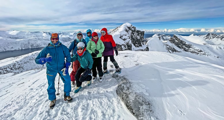 Unsere Schneeschuhziele liegen alle nahe am Wasser, diese Kombination bietet ein ganz besonders Ambiente als bei uns in den Alpen. Der Blick über den Vestfjorden hinaus aufs Nordmeer und die gegenüber liegenden Lofoten ist atemberaubend. Sehens- und erwähnenswert ist auch der Stetinden, Norwegens Nationaler Gipfelstolz, nur noch getoppt von unserem Horu im steinernen Kanton.